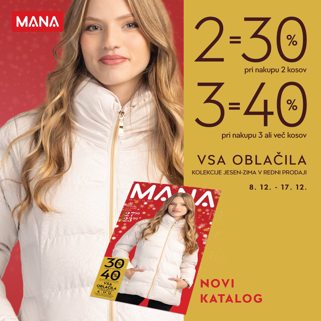 V novem MANA katalogu te čaka velik izbor toplih bund in mehkih pletenin za odrasle. Z akcijo na oblačila jesen–zima pa prihraniš še več. Pri nakupu…