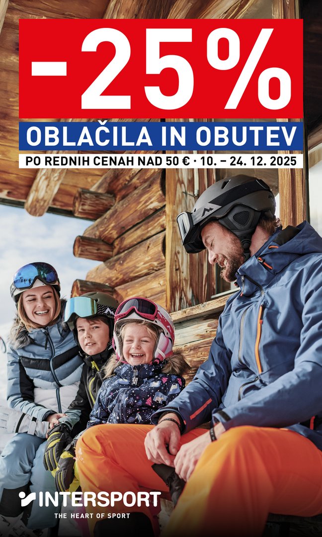 V poslovalnicah INTERSPORT vas čaka 25 % popusta na oblačila in obutev po rednih cenah pri nakupu nad 50 €.Izkoristite priložnost za osvežitev zimske…