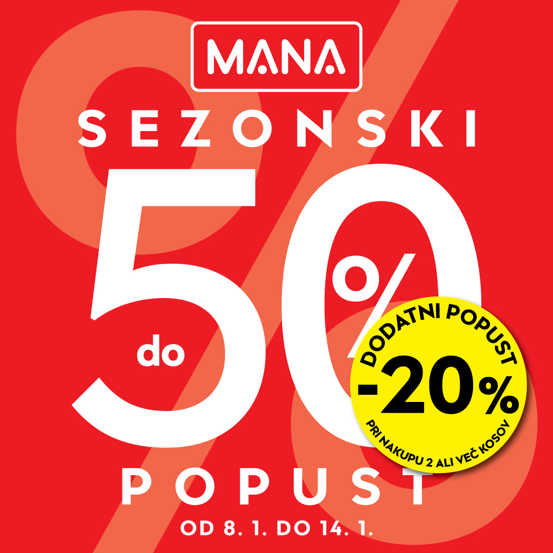 Izjemno modno, privlačno in vedno ugodno. V trgovini MANA je nakupovanje pravi užitek, saj lahko napolnite svojo garderobo z najnovejšimi modnimi trendi in pri tem še prihranite. Modne kolekcije, privlačne za vse generacije, odlikujejo modni videz, kakovostni materiali in seveda nizke cene. Na prodajnih policah vas čaka prava modna poslastica za vsak okus. V MANI boste vedno našli najboljšo izbiro oblačil in modnih dodatkov za ženske, moške in otroke, od trendovskega uličnega sloga do večne klasike, elegantnih oblek in poslovnih oblačil.